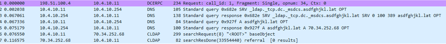 This request will trigger the target machine to resolve the domain, by making a DNS query to _ldap.tcp.dc._msdcs.<our_domain>