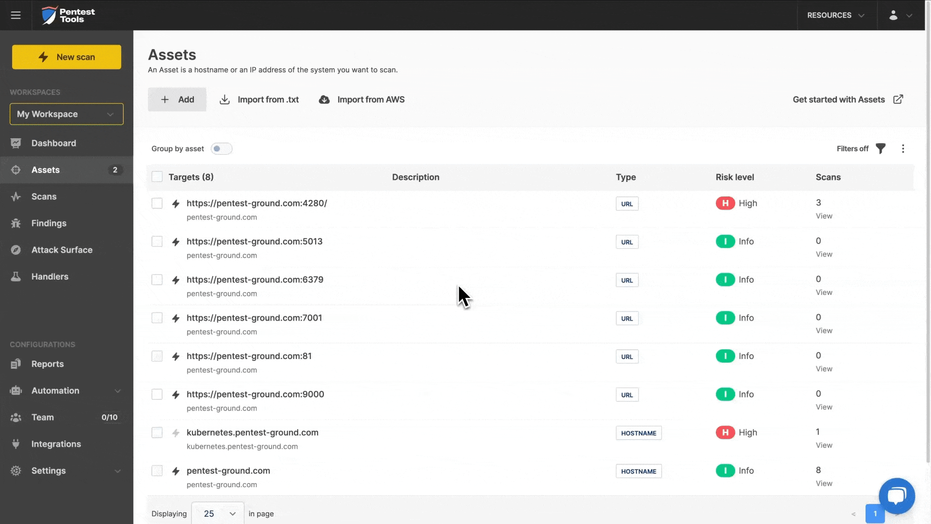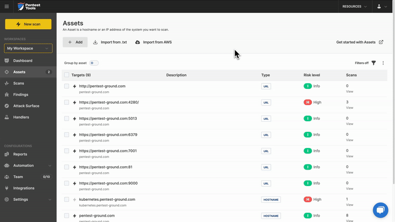 Asset descriptions everywhere – Asset descriptions now show in Scans and Findings (including manual findings) for easier identification.