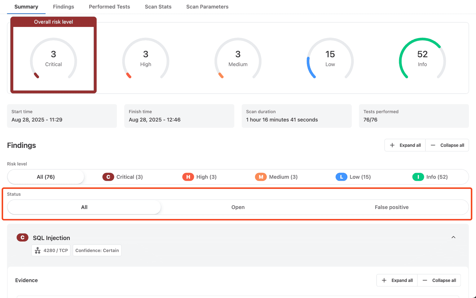Collapse findings – Hide or expand findings with a single click for cleaner navigation.