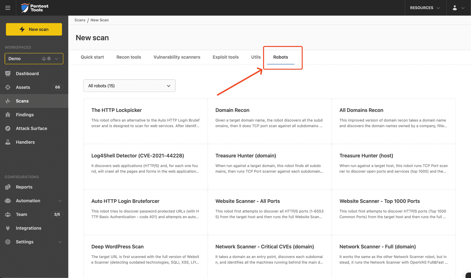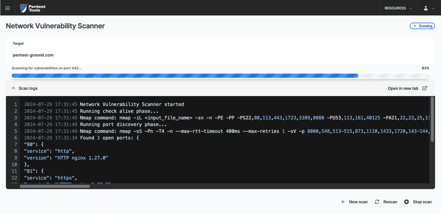 🎯 Unified view – Run the same Pentest-Tools.com tools for both external and internal testing, managed from a single interface.