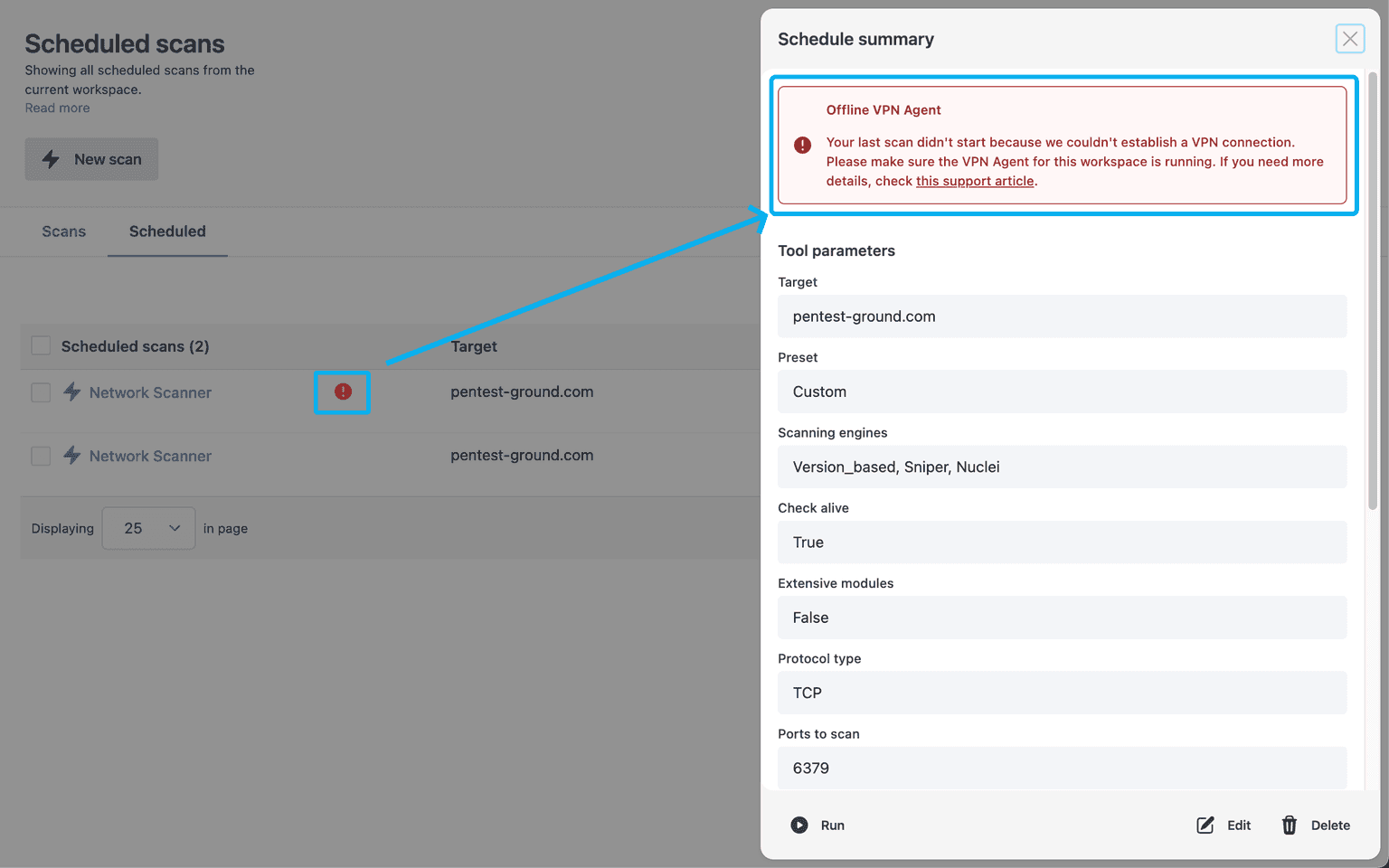 🎯 Secure by design – All scans are tunneled through the VPN Agent with no inbound firewall changes required.