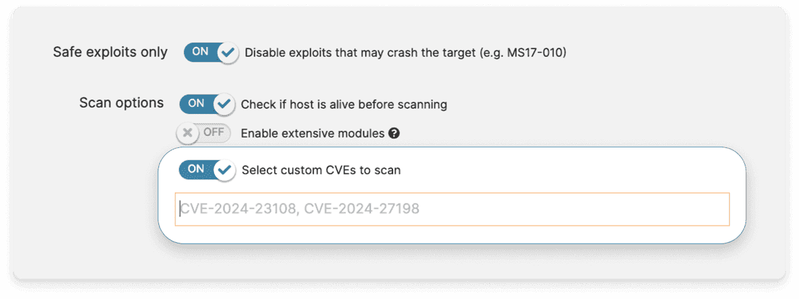 PRO TIP: run targeted CVE scans to validate patching, identify remaining attack surface, and generate evidence for stakeholders.